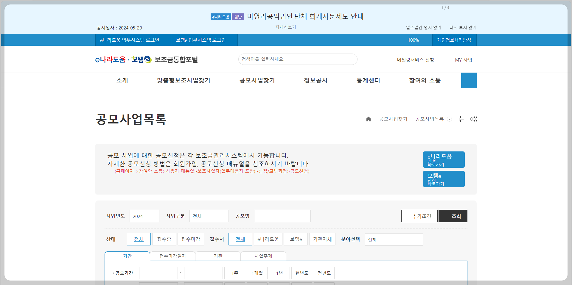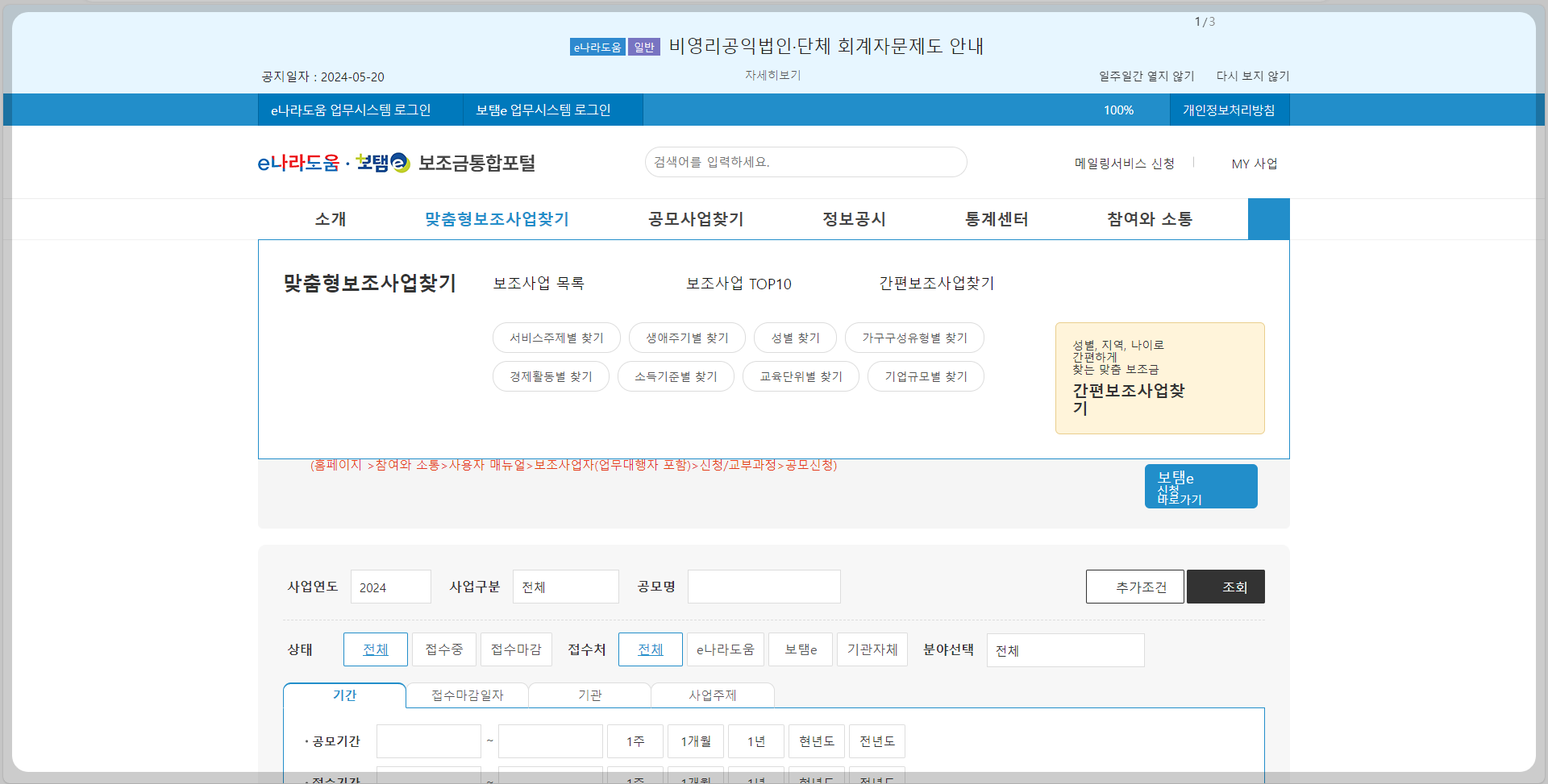 1. 보조금통합포털 홈페이지