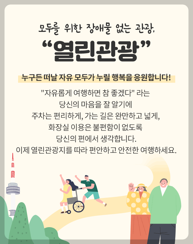 장애인,시니어(고령자),임산부등 관광 취약계층이 안전하고 독립적인 관광활동을 할 수 있도록 만든 서비스로 열린 관광지라는 상품이 있다는 걸 아셨나요?